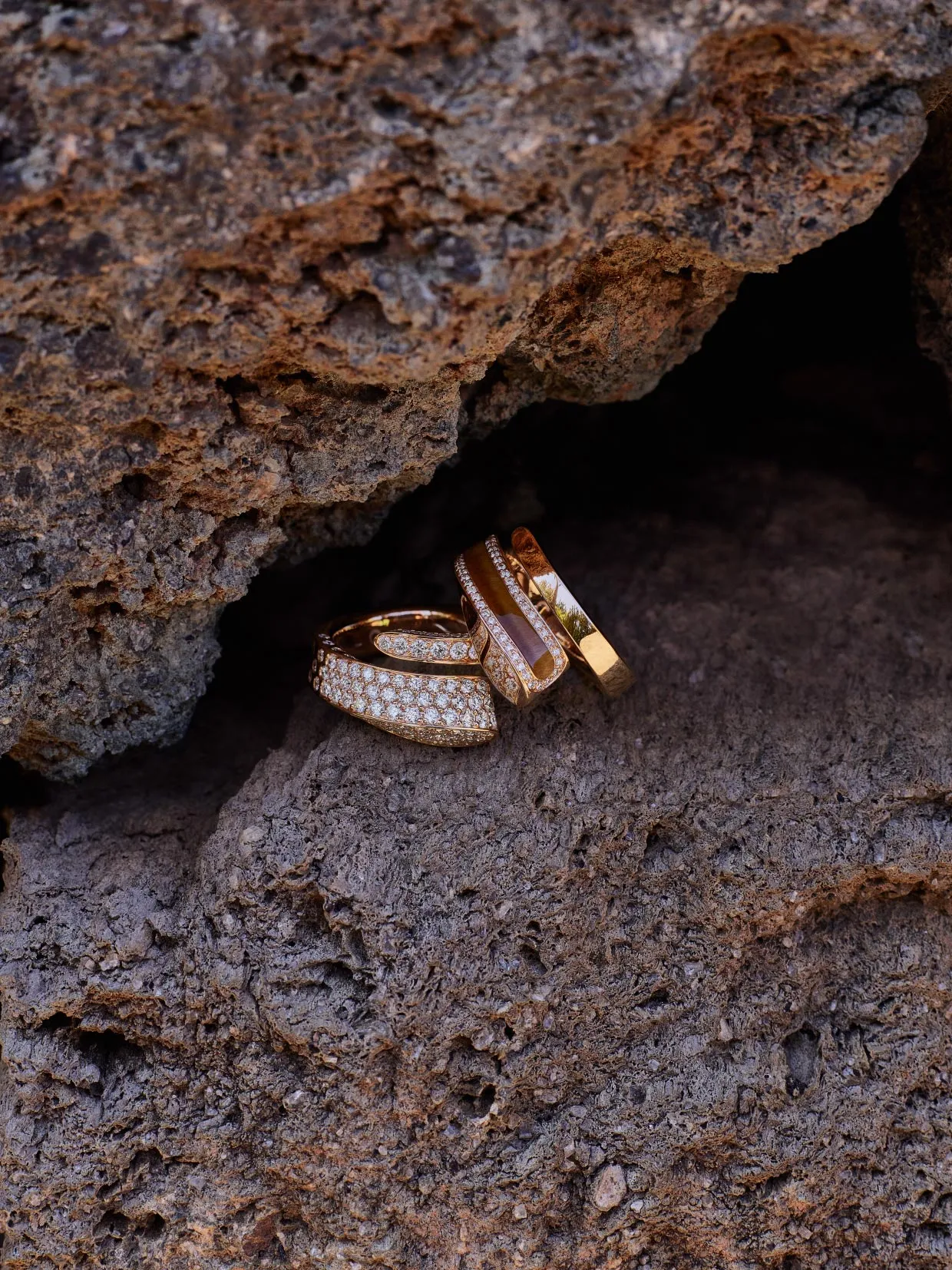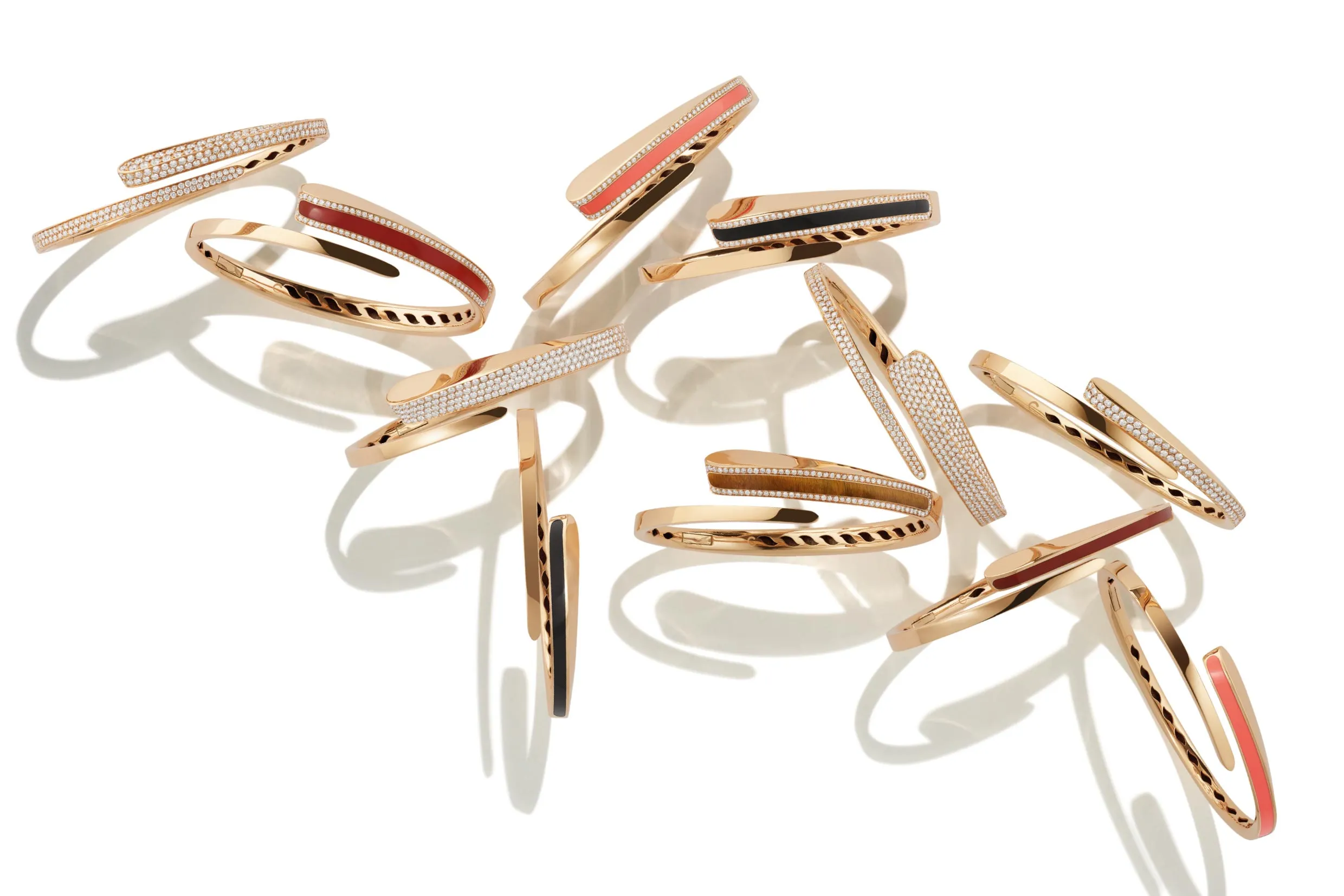Crafted in 18k gold in white, rose, and yellow variations, the pieces are enhanced with brilliant-cut diamonds, meticulously hand-set to achieve maximum sparkle. The collection also features the colorful Like Chromatic line with natural gemstones such as onyx, malachite, lapis lazuli, and turquoise, as well as the bold Like Full Pavé versions entirely set with diamonds.