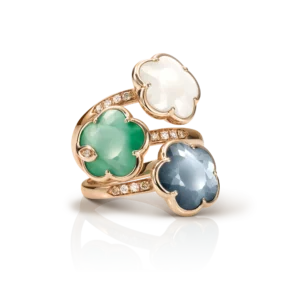 Crafted in 18k rose gold, the jewels feature carefully selected gemstones such as onyx, green agate, lapis lazuli, turquoise, pink chalcedony, and mother of pearl, all shaped into the collection’s iconic floral design. Subtle diamond accents add a refined sparkle and a touch of luxury. With rings, earrings, necklaces, and bracelets designed to be mixed and matched, Petit Joli offers endless styling possibilities for women who love color, lightness, and jewelry with emotion.